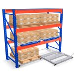 The design, construction, and features of our Roll Out Pallet make hand picking safer and more efficient. The Roll Out Pallet rolls on tracks installed on the floor, preventing unexpected relocation of pallets. The pallet always slides out of the rack. The material comes to you. Reaching and crawling for stored material become things of the past. Since you no longer need to crawl to get at materials, the first level of beams can be lower, giving you more storage space. The standard brake system securely holds the Roll Out Pallet in place while the lift is loading it, which eliminates a lot of dangerous handling.